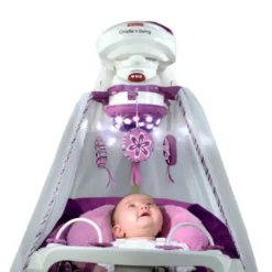 Детские электронные качели «Конфетка» от Fisher price предназначены для новорожденных малышей и может использоваться пока ребенок не стремиться сидеть самостоятельно или не достигает 10-11 кг в весе. Прокат детских качелей позволит маме освободить руки хотя бы на некоторый период. Использование качелей с такими функциями как вращение игрушек, световая проекция, классические мелодии способствует раннему гармоничному развитию ребенка. Люлька по своей форме напоминает кокон, т.е. ребенок лежит на спинке, а его ножки слегка приподняты вверх. Положение кокон естественно для младенца. В качелях предусмотрен мягкий подголовник, который будет поддерживать головку малыша во время качания.