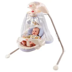Качели Starlight, одна из самых популярных моделей от известной американской фирмы Fisher Price, позиционируется как решение преимущественно для мальчиков.