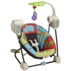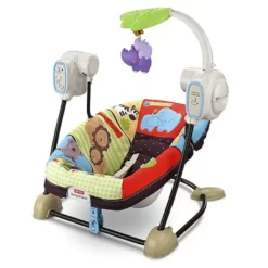 Мобильные качели Fisher price могут использоваться как детский шезлонг. Благодаря специальному фиксатору качели можно установить в неподвижном положении и использовать только функцию виброукачивания. Такие качели удобны в использовании, занимают очень мало места по сравнению с укачивающими центрами, их можно переносить из одной комнаты в другую, перевозить и даже брать на природу.